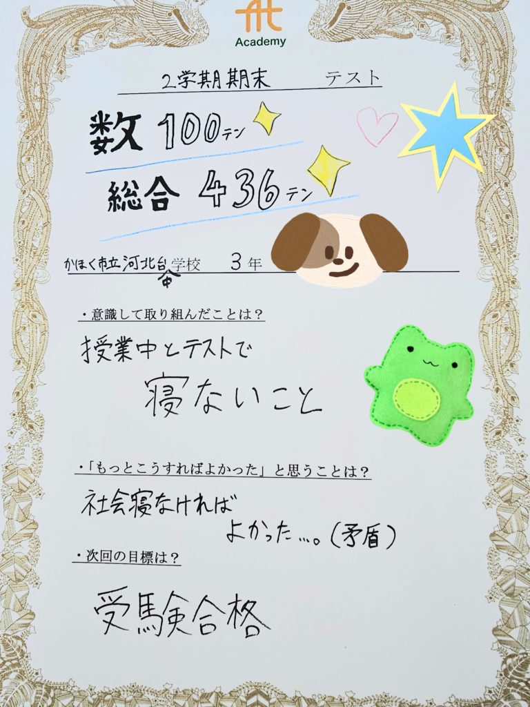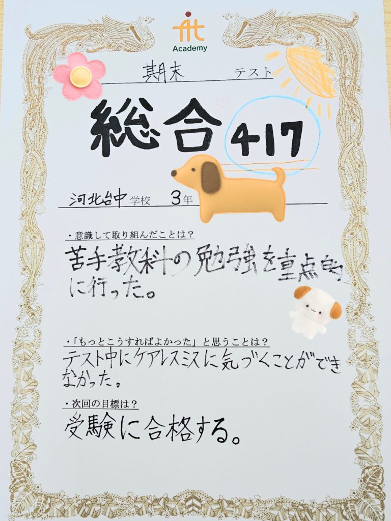 難しい問題が出てもあきらめず答えにたどり着く姿を