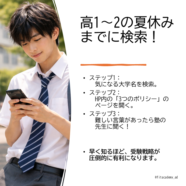 「気になる大学名」+「3つのポリシー」で今すぐ検索!